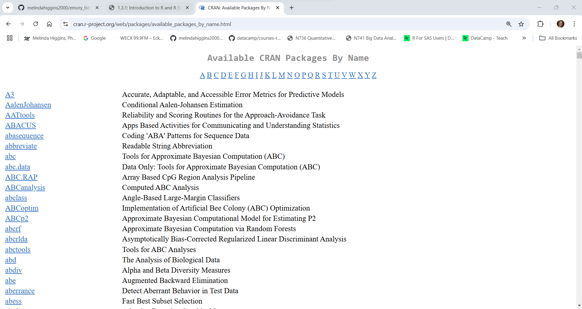 Using the “Tools/Install” Packages menu from within RStudio automatically links to CRAN, which is the “The Comprehensive R Archive Network”. You’ve already been here once to download and install the R programming language application.