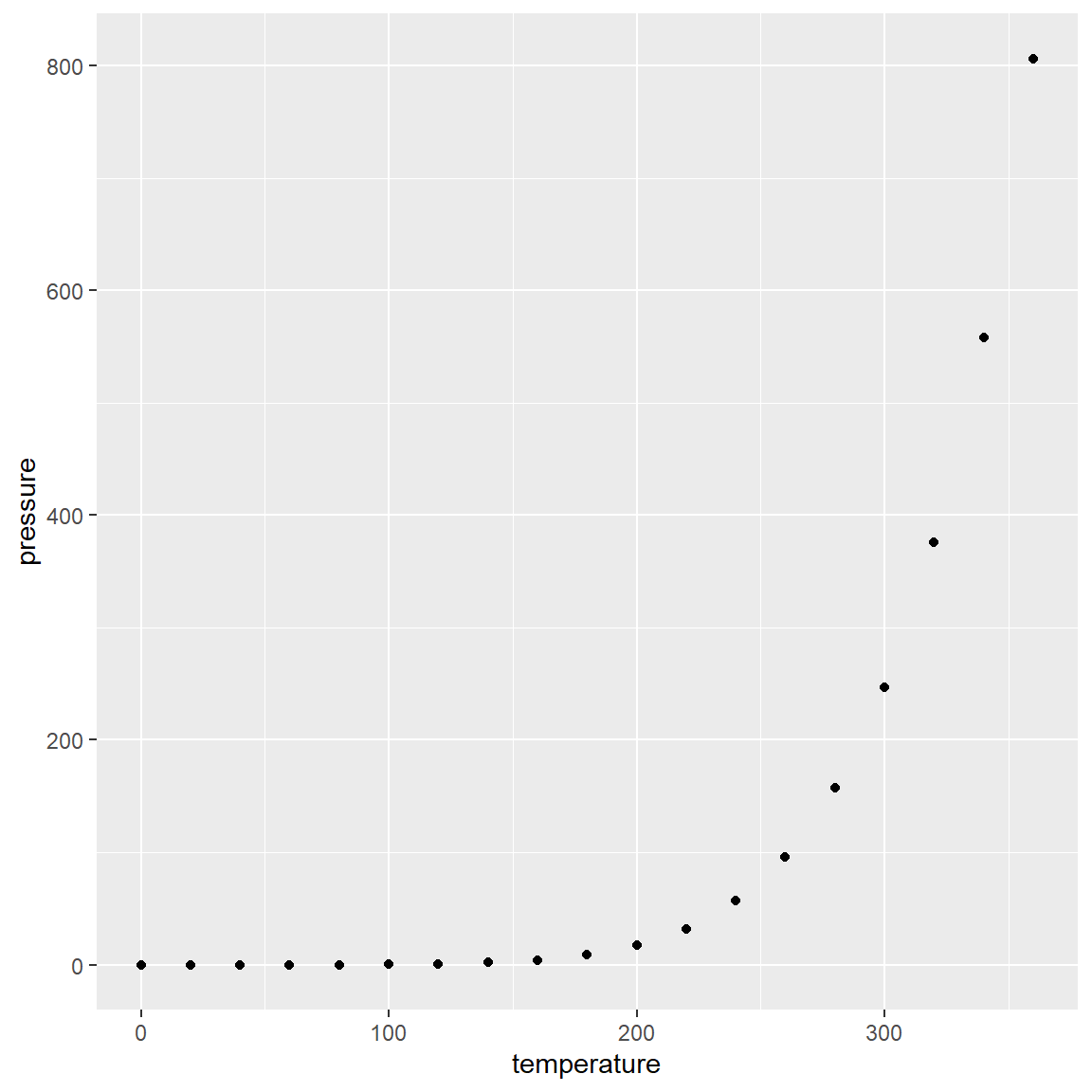 geom_point()Error in ggplot(pressure, aes(temperature, pressure)): could not find function "ggplot"