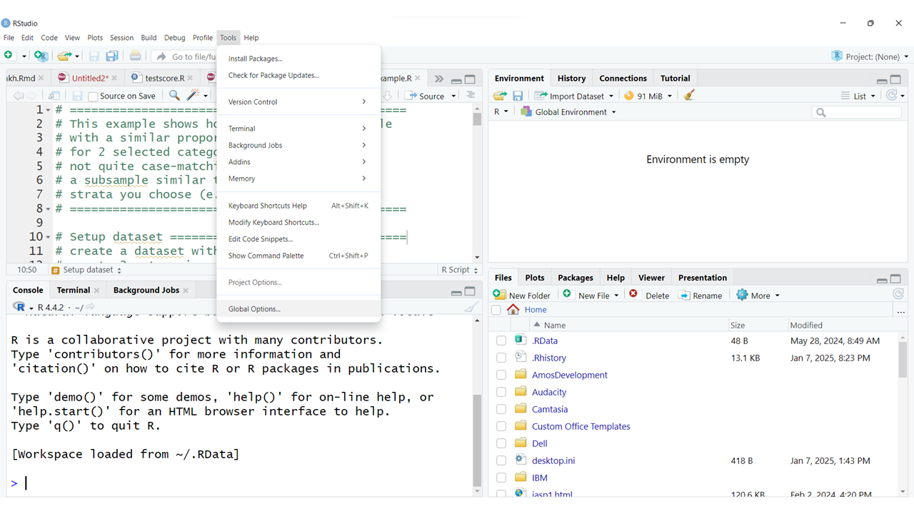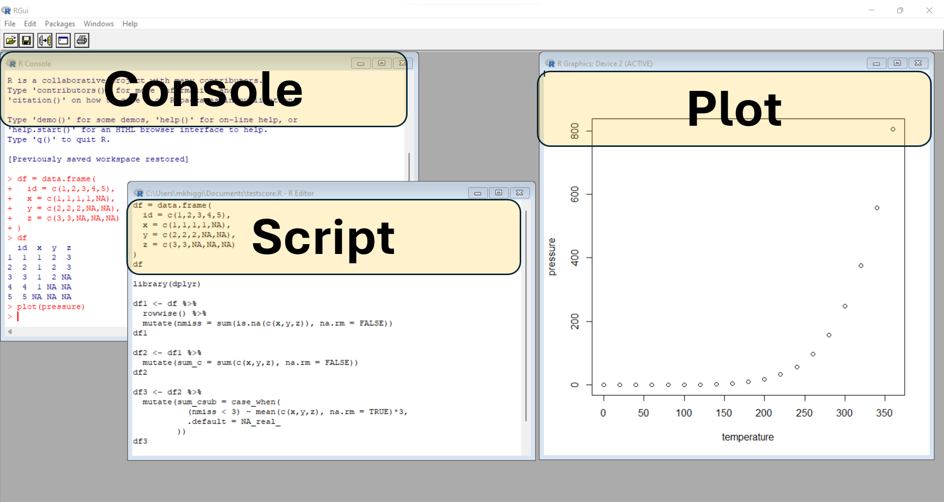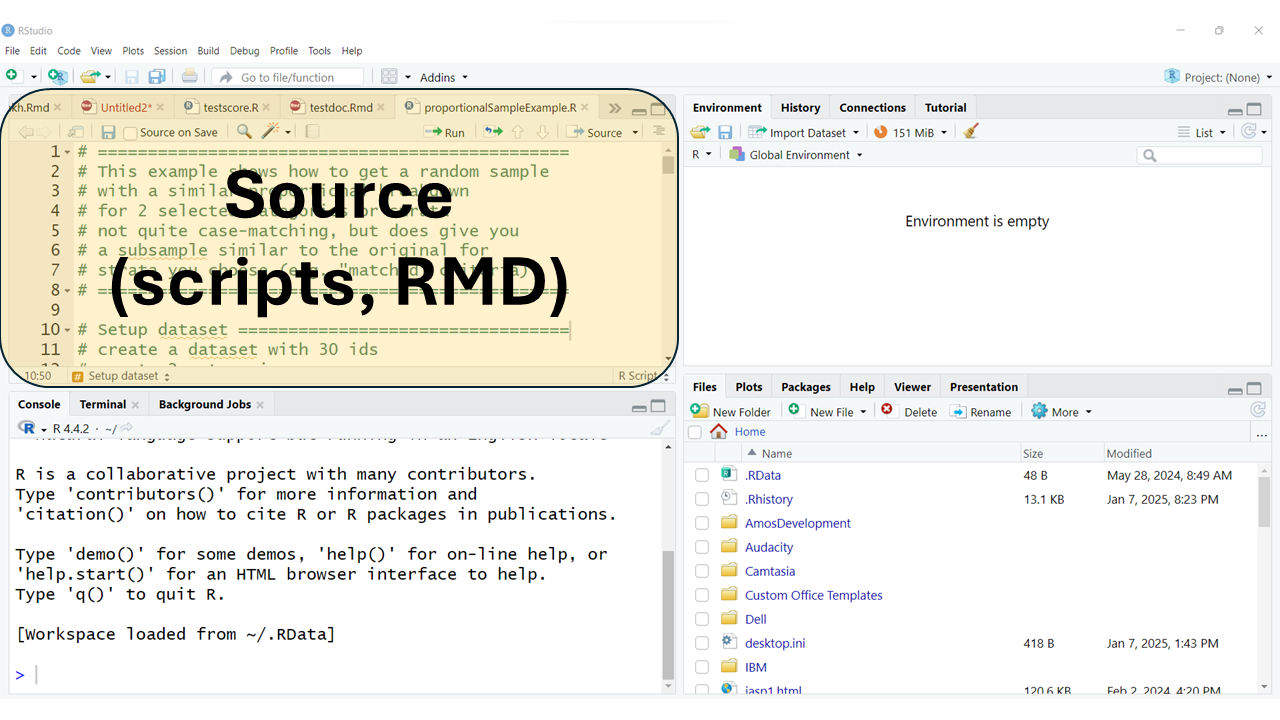 However, you will still need to write and execute code using scripts and related files. An IDE is NOT a GUI (graphical user interface) which is the “point and click” workflow you may have experience with if you’ve used other analysis software applications such as SPSS, SAS Studio, Excel and similar.