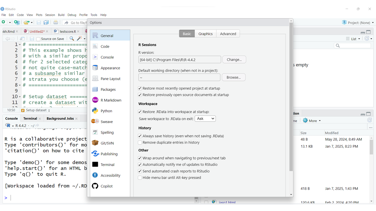 You will probably want to explore fine-tuning these parameters to customize the appearance of your RStudio preferences. For example, you can change the ZOOM level to improve readability. You may also want to change the FONT sizes for the Editor and Help windows as needed.